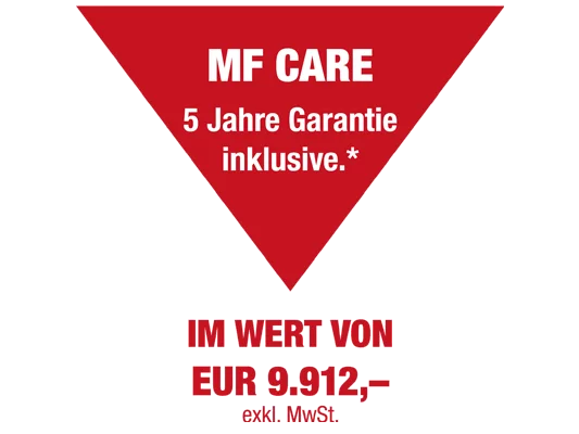 Profitieren Sie jetzt von der kostenlosen MF-Care-GarantieverlÀngerung* im Wert von EUR 9.912,- exkl. MwSt