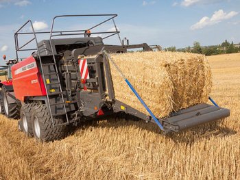 Die integrierte Ballenwaage ermittelt das Gewicht des Ballens beim Verlassen der Presskammer auf der Ballenrutsche.