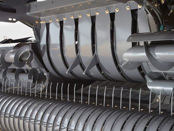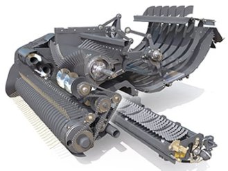 Falls kein Erntegut geschnitten werden muss, ist die Variante mit Raffereinzug die perfekte Wahl. Die 4 Halbschnecken und die starken Raffergabeln sorgen für eine besonders hohe Aufnahmeleistung und maximale Fahrgeschwindigkeit.