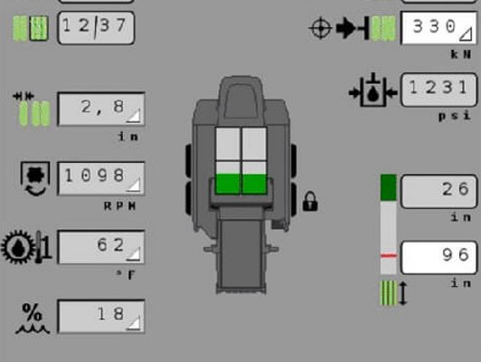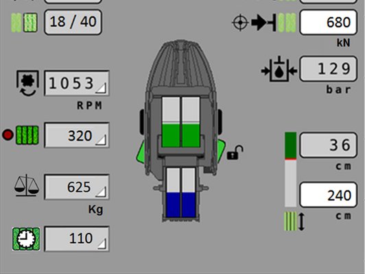 Bei TIM-konformen Traktoren überwacht die Ballenpresse die Leistung genau und passt die Fahrgeschwindigkeit automatisch an. Das System ermöglicht es dem Fahrer, sich voll und ganz auf das Lenken und die Erntegutzufuhr zu konzentrieren.