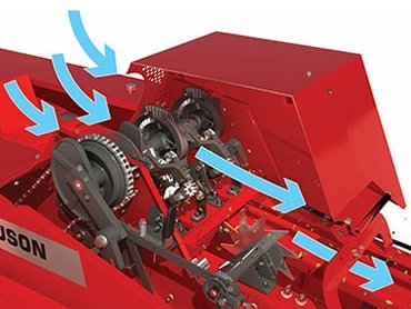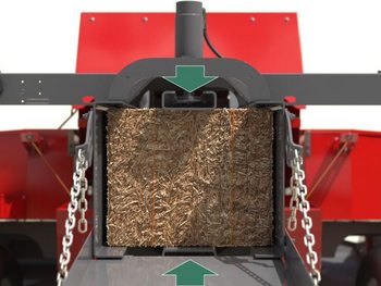Das Erntegut wird der Vorpresskammer zugefĂŒhrt, wo die Lage vorgeformt wird, bevor sie in die Hauptpresskammer geschoben wird. Dies gewĂ€hrleistet, dass der Ballen eine perfekte Form erhĂ€lt, die Ballendichte verbessert wird und die Bauteile weniger stark beansprucht werden, um so die Lebensdauer der Ballenpresse zu verlĂ€ngern.