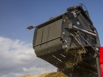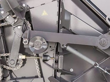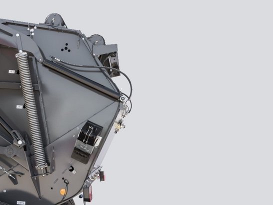 Das patentierte System der Ballenformung zeichnet sich aus durch die Heckklappe, die sich beim Pressen abwärts bewegt, sodass der größer werdende Ballen von selbst nach hinten gleiten kann. Die Ballenkammer verfügt zudem über einen separaten Bereich für den Ballenstart mit zwei zusätzlichen Rollen, die einen hervorragenden und dichten Ballenkern bilden.