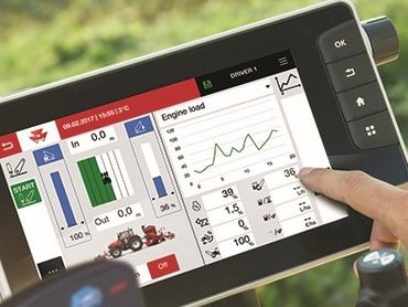 Der Einsatz eines einzelnen Terminals für sämtliche Arbeitsgeräte in der Kabine des Traktors verbessert die Übersichtlichkeit und sorgt für eine einfachere und genauere Bedienung durch den Fahrer, der mit unterschiedlichen Maschinen eine Vielzahl von Aufgaben bewältigen kann.