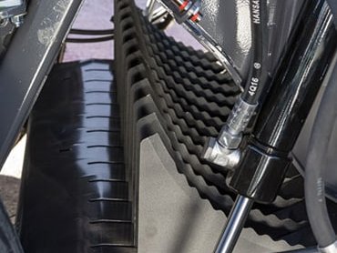 Der hydraulisch betriebene Wickeltisch besteht aus zwei Rollen und drei Endlosriemen auf einem geschweißten Rahmen, was eine noch bessere Langlebigkeit verspricht.