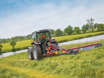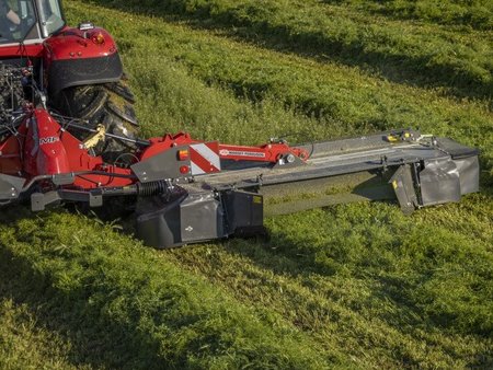 Der prĂ€zisionsgefertigte zahnradgetriebene MĂ€hbalken mit elliptischen Scheiben, rotierenden Schwadformern und starken Fördertrommeln stellt auch in schwierigem GelĂ€nde einen sauberen gleichmĂ€Ăigen Schnitt und einen hohen Durchsatz sicher.