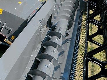 Am FreeFlow™-Schneidwerk erhöhen über die gesamte Breite angeordnete Einzugsfinger den Durchsatz der Einzugsschnecke und gewährleisten eine aktive und schnelle Zufuhr in den Schrägförderer.