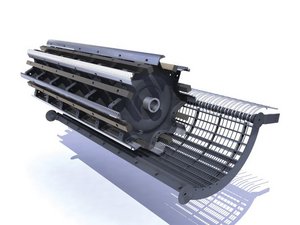 Der Dreschkorb hat unterschiedliche Drahtabstände, da sich im hinteren Bereich nur halb so viele Korbdrähte wie im vorderen Bereich befinden. Diese spezielle Anordnung sorgt für ein optimales Verhältnis zwischen hoher Drusch- und guter Abscheideleistung.