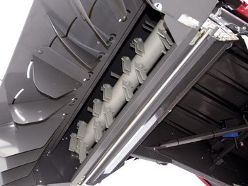 Am FreeFlowâą-Schneidwerk erhöhen ĂŒber die gesamte Breite angeordnete Einzugsfinger den Durchsatz der Einzugsschnecke und gewĂ€hrleisten eine aktive und schnelle Zufuhr in den SchrĂ€gförderer.