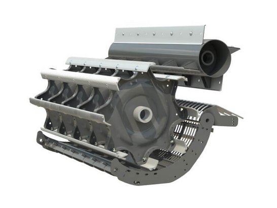 MCS verfĂŒgt ĂŒber eine riesige AbscheideflĂ€che, um so viel Korn wie nur möglich abzuscheiden, bevor es zu den StrohschĂŒttlern gelangt. Der Abscheidekorb kann bequem elektrisch ĂŒber den Rotor geschwenkt werden.