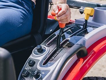 Die Hochleistungshydraulik liefert bis zu 48âŻl/min fĂŒr den simultanen Betrieb von Dreipunkthydraulik und AnbaugerĂ€ten, mit zwei SteuergerĂ€ten serienmĂ€Ăig im Heck.