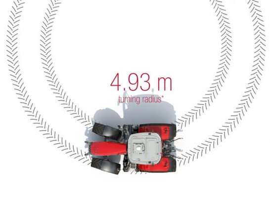 Die große Wendigkeit trägt zur Verbesserung der Produktivität beim Wenden am Vorgewende auf dem Feld ebenso wie bei Laderarbeiten oder beim Befahren enger Straßen bei.